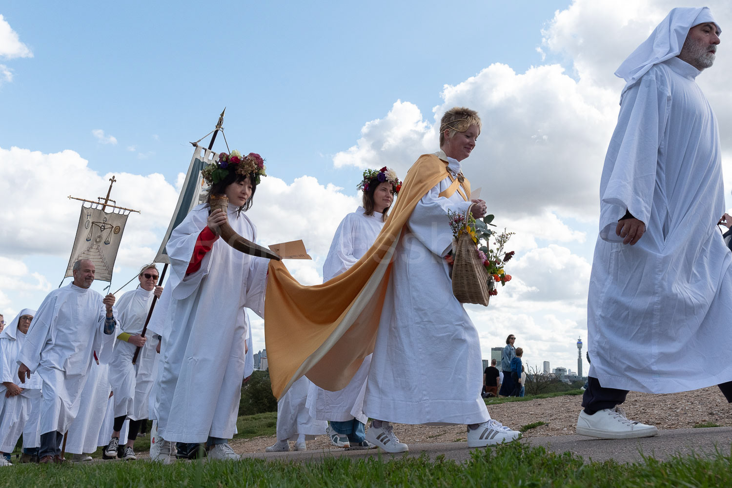 The British Order of Druids proceed up London's Primrose Hill for their Autumn Equinox ceremony. © Ron Fassbender