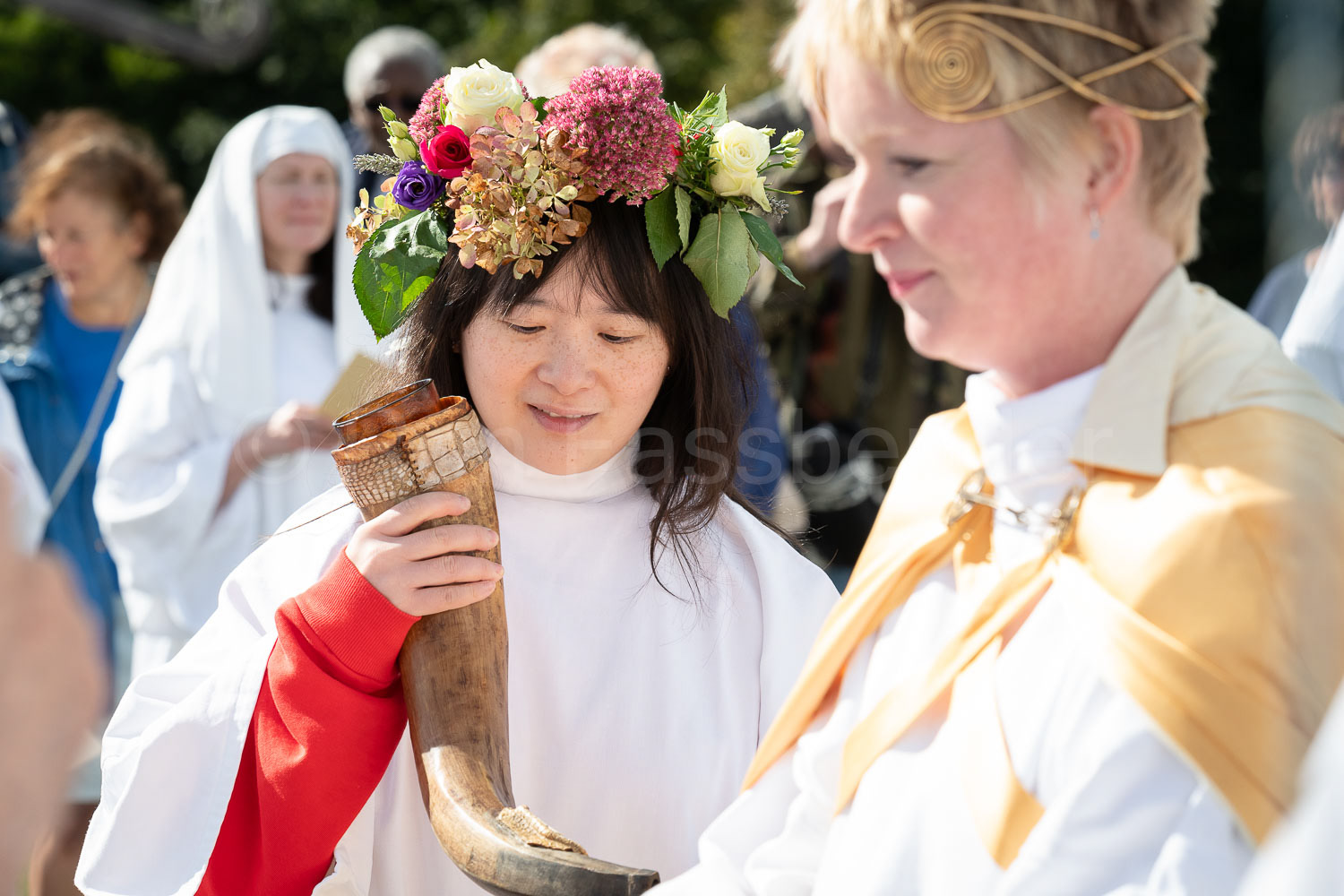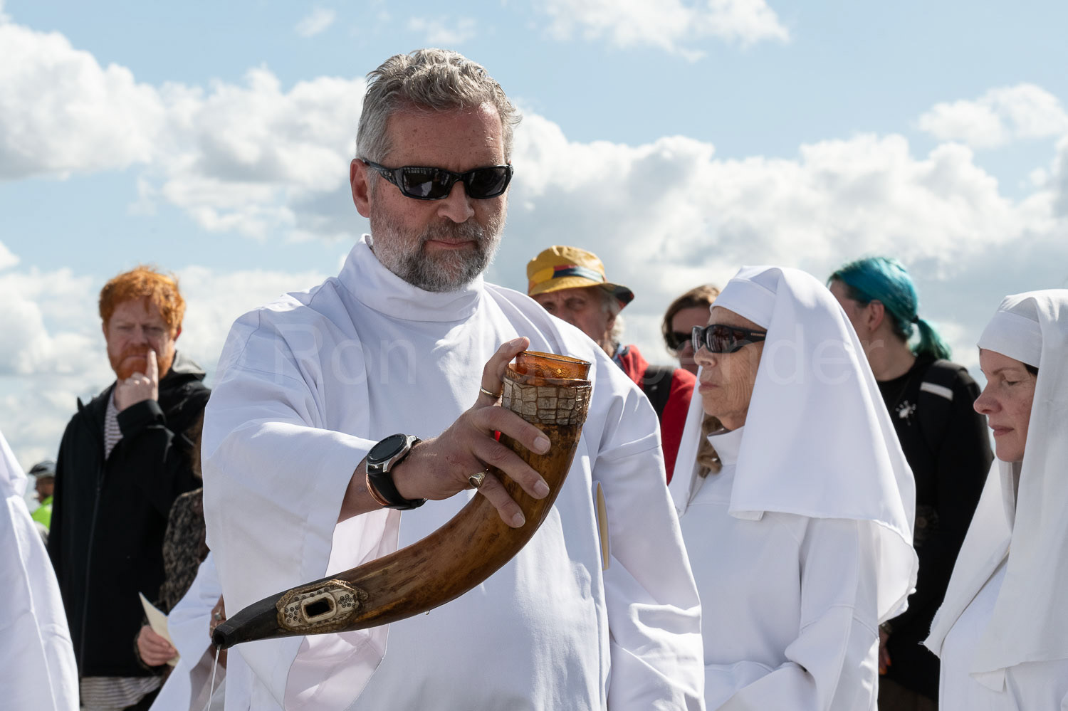The British Order of Druids prepare for the Autumn Equinox ceremony on Primrose Hill, London. © Ron Fassbender