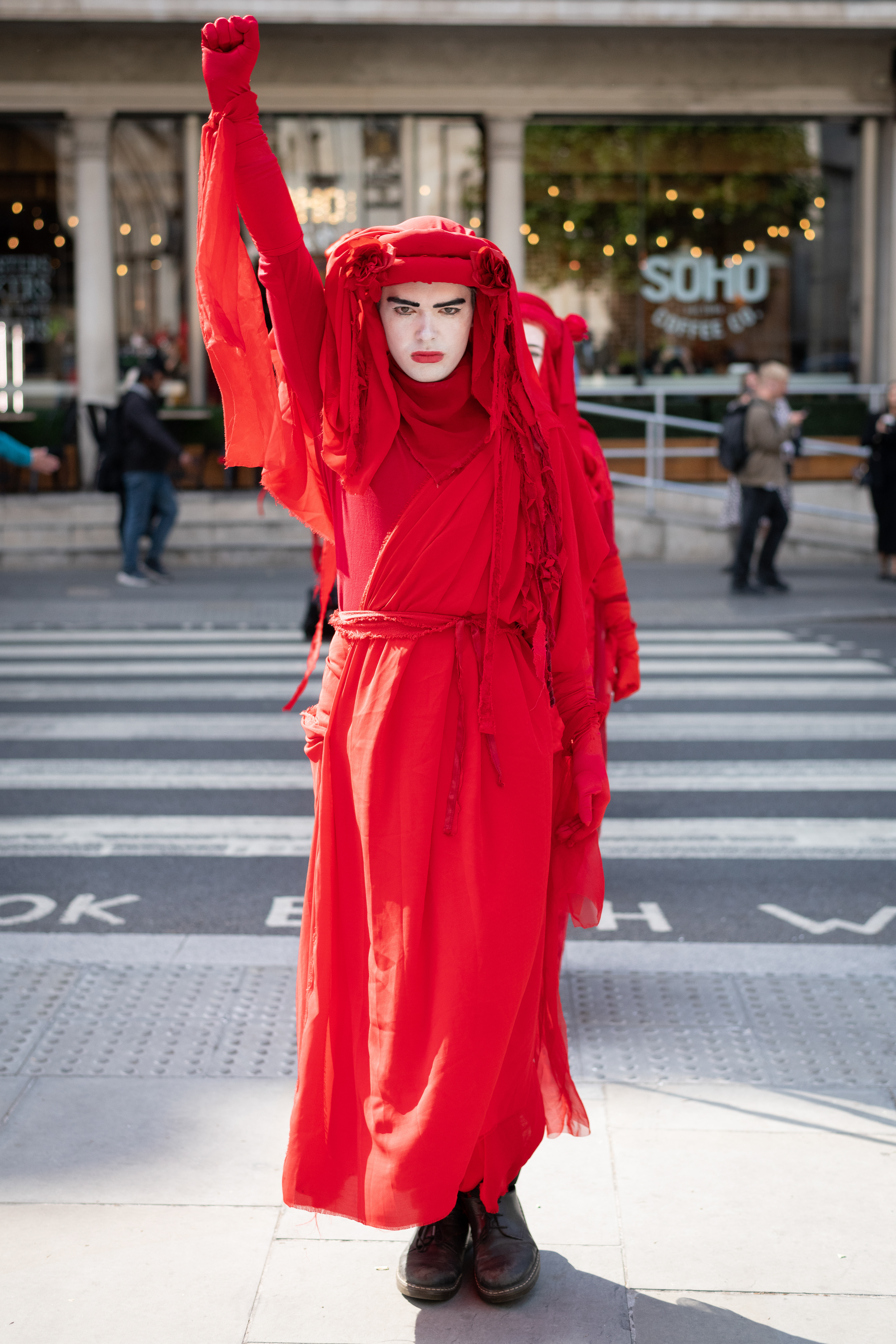 London, UK. 8 June, 2023. Opponents of a proposed scheme to drill for gas in Surrey rally outside the Royal Courts of Justice at the start of a judicial review, joined by the Red Rebel Brigade mime troupe. The original application to search for fossil fuels in 2020 was rejected by Surrey County Council, but later approved by minister Michael Gove. Waverley Borough Council challenged this decision and were granted a judicial review. Arguments raised include greenhouse gas emissions and the proximity of the site to an Area of Outstanding Natural Beauty (AONB).