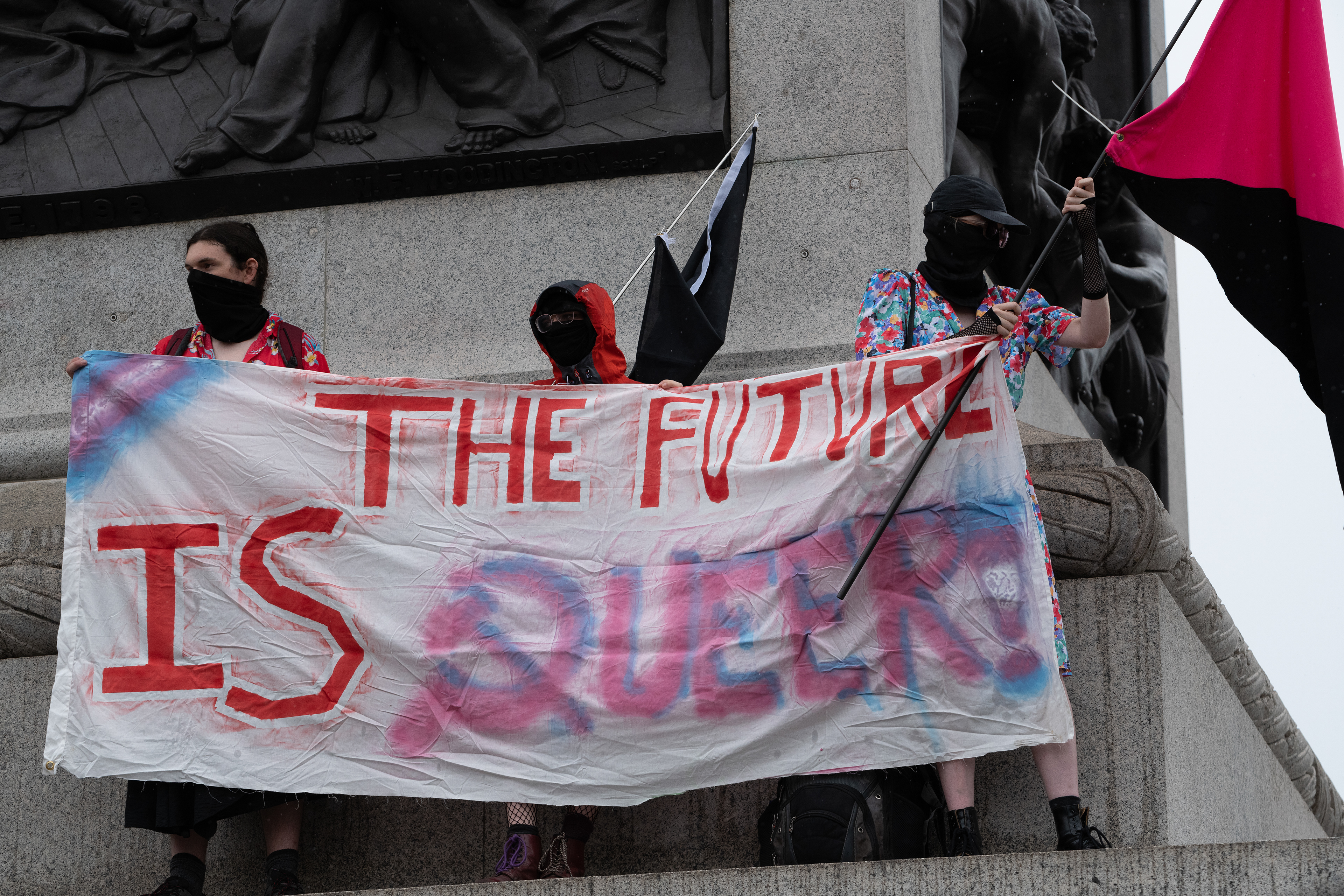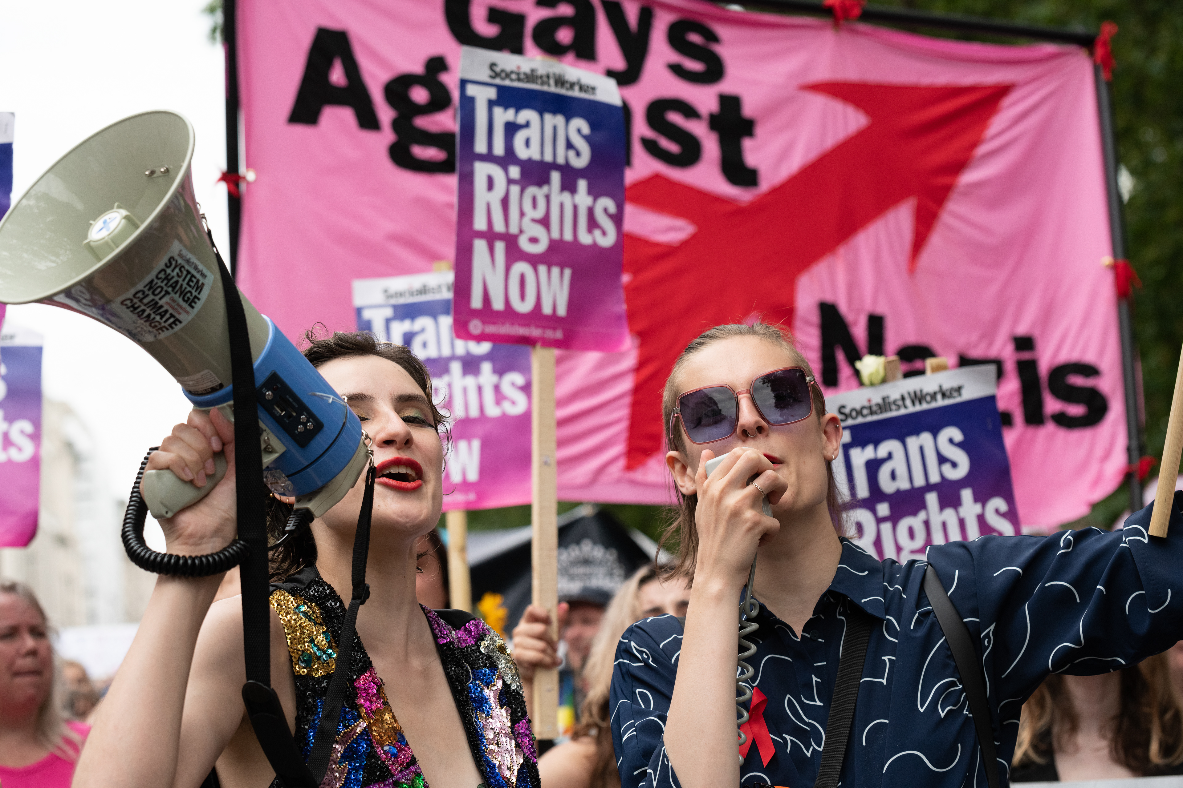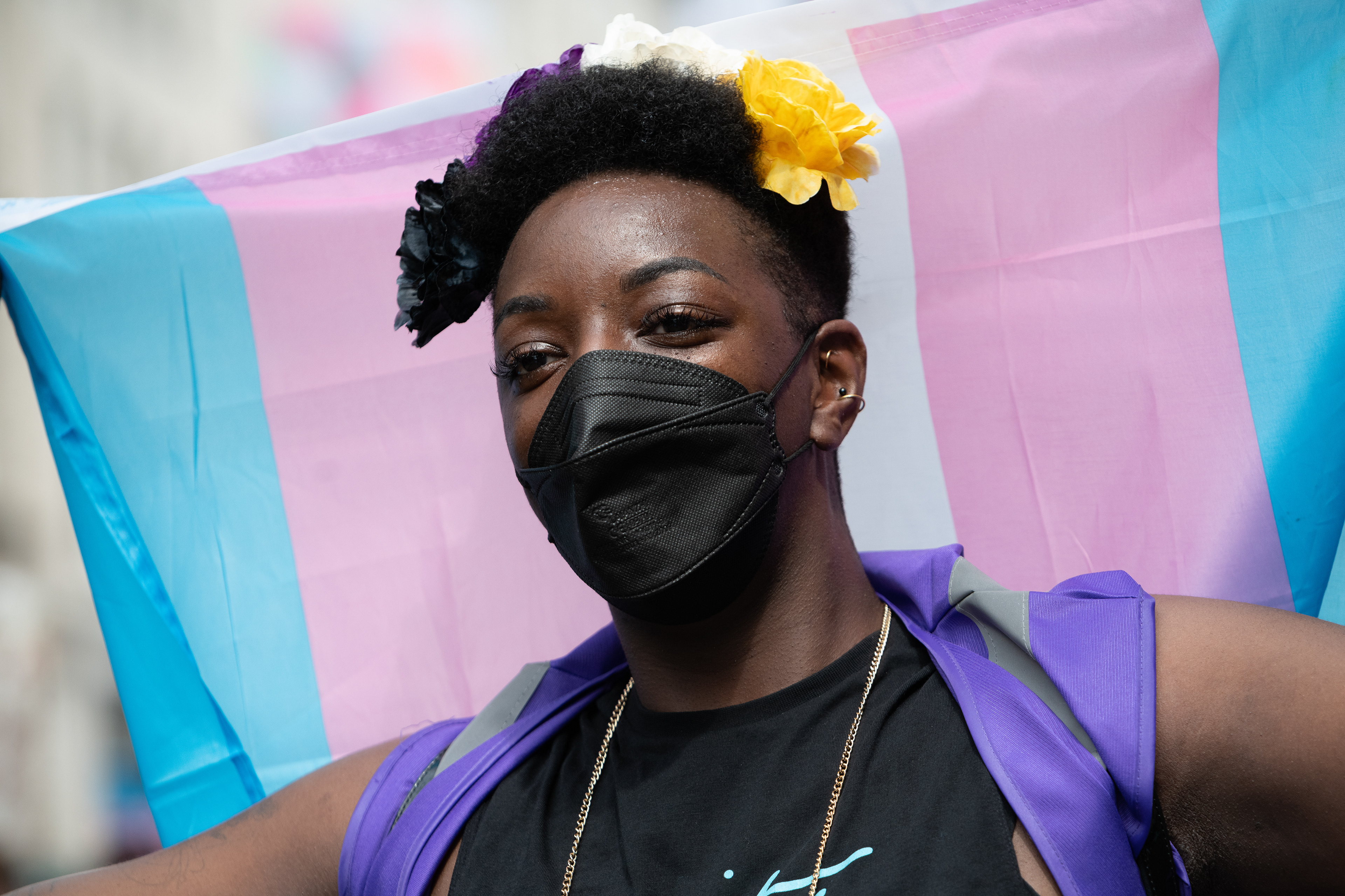 London, UK. 8 July, 2023. Thousands of transgender people and supporters gather in Trafalgar Square before marching to Hyde Park in the annual Trans+ Pride rally. Founded in 2019 by Lucia Blayke the event is both a celebration and a response to the discrimination faced by transgender people, calling for freedom and equality.