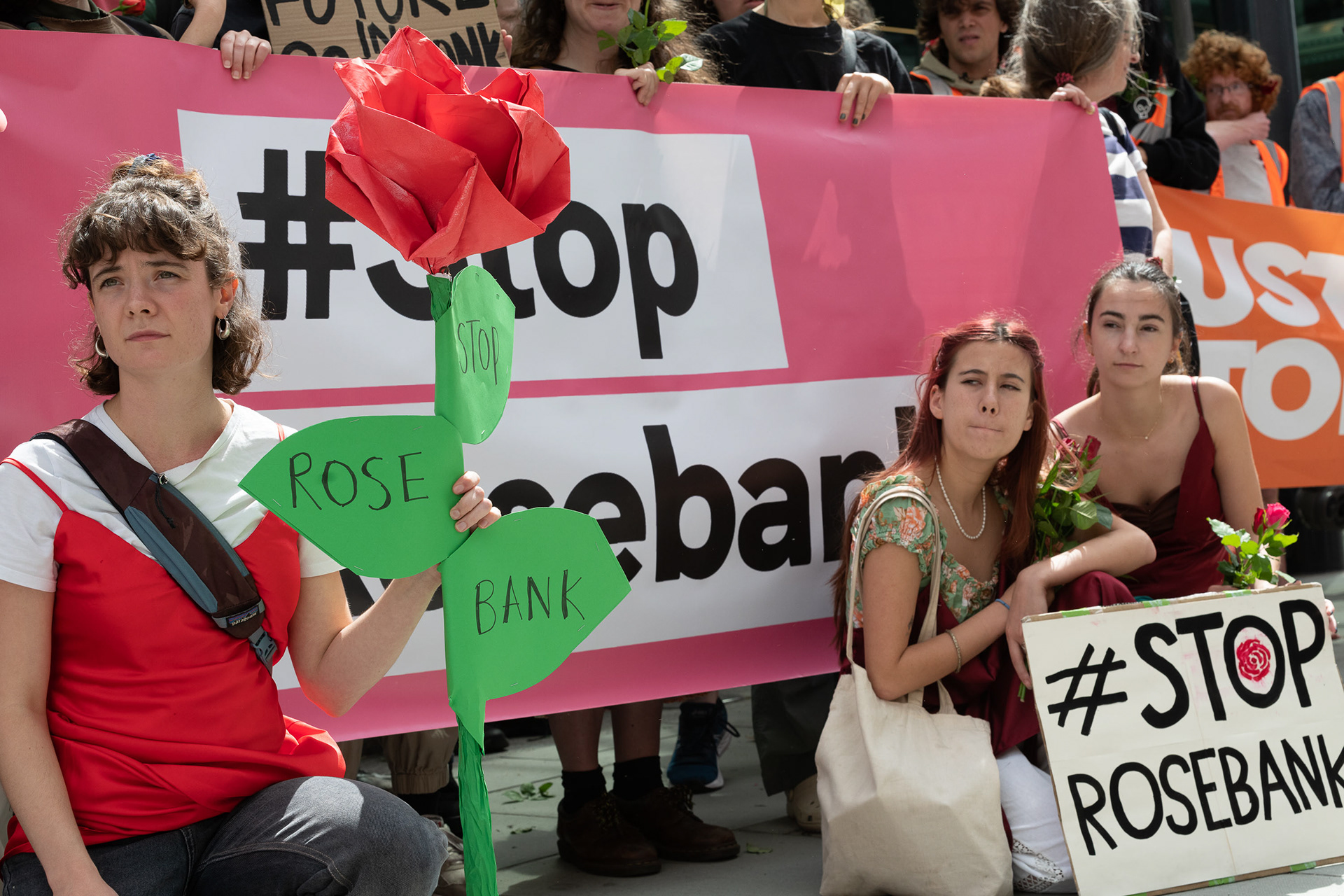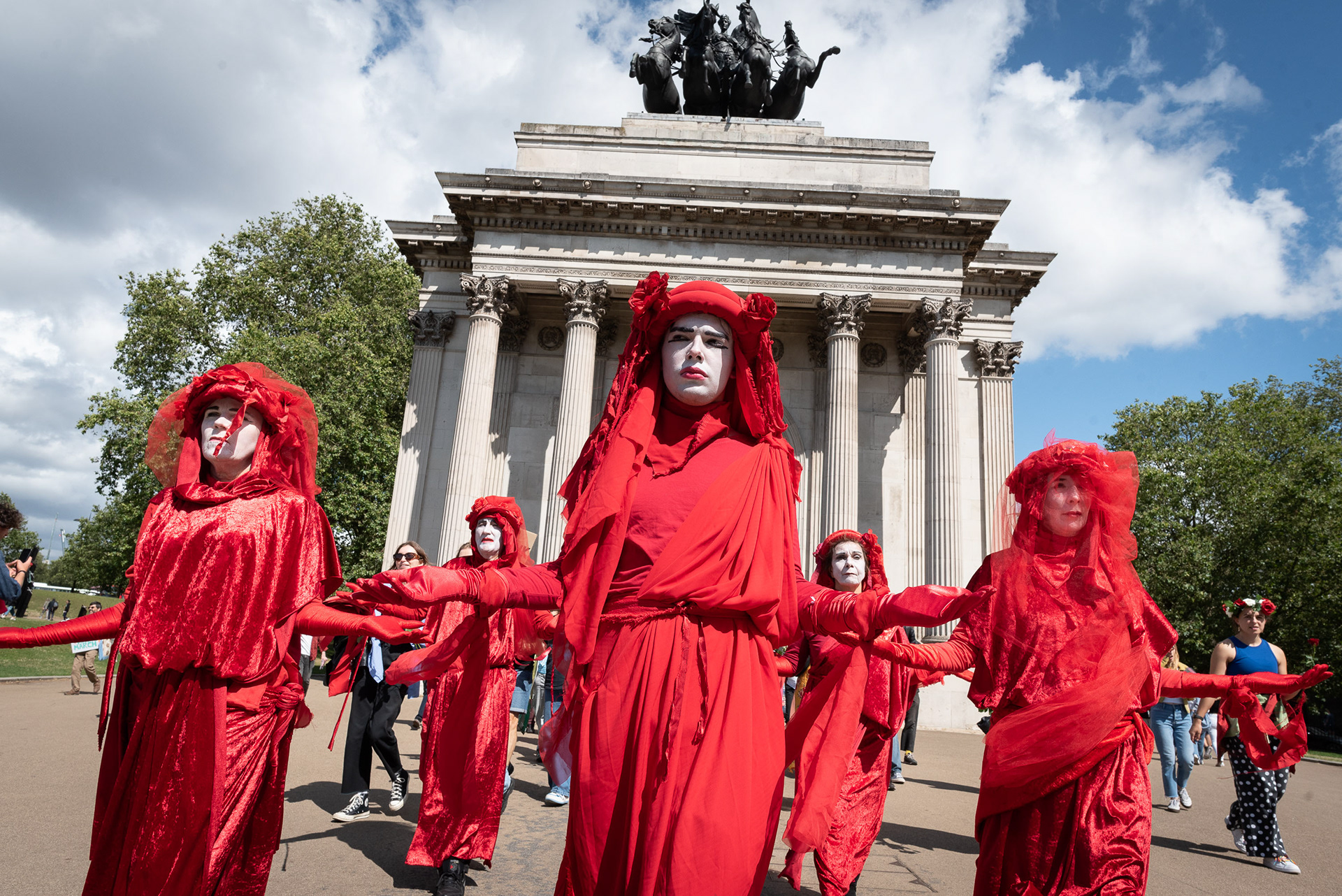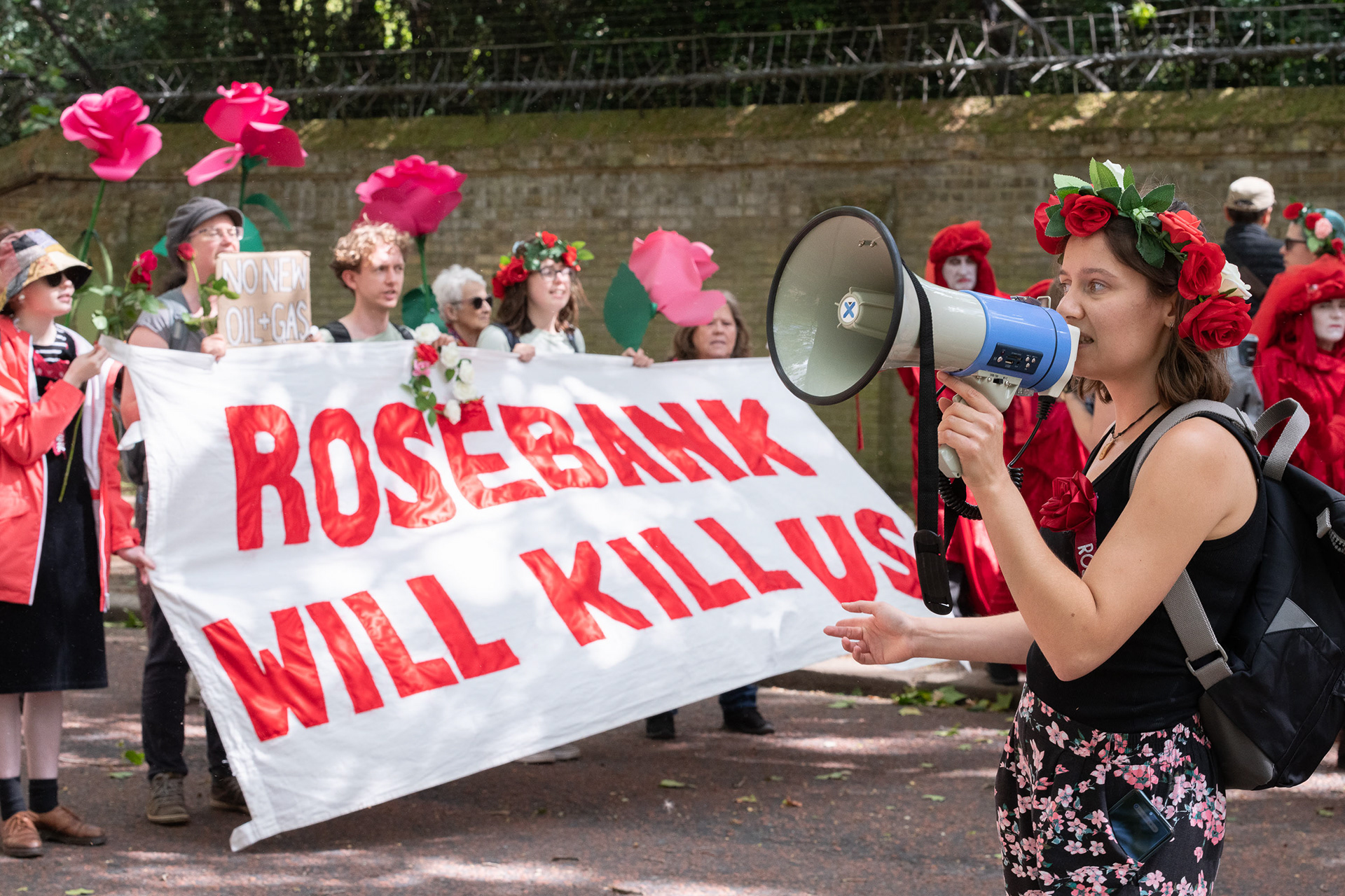 London, UK. 15 July, 2023. Climate activists from Fossil Free London and Just Stop Oil protest at the Department for Energy Security & Net Zero (DESNZ) against the proposed development of the Rosebank oil field by Norwegian state-owned oil company Equinor which, campaigners say, threatens both climate targets and marine wildlife. Located 130 kilometres west of the Shetland Islands it is the biggest undeveloped oil field in the North Sea. After a rally at DESNZ many marched to the Equinor HQ in Paddington via Marble Arch where a die-in was staged.
